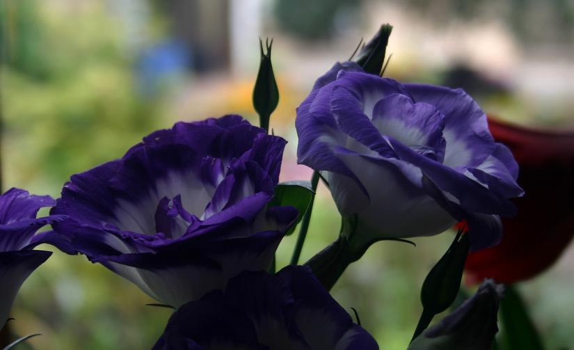 A partir da imagem abaixo, construa um enunciado no qual você usará a cor roxa ao sentido paz. Use na construção os termos flores, inclinadas, sombras.