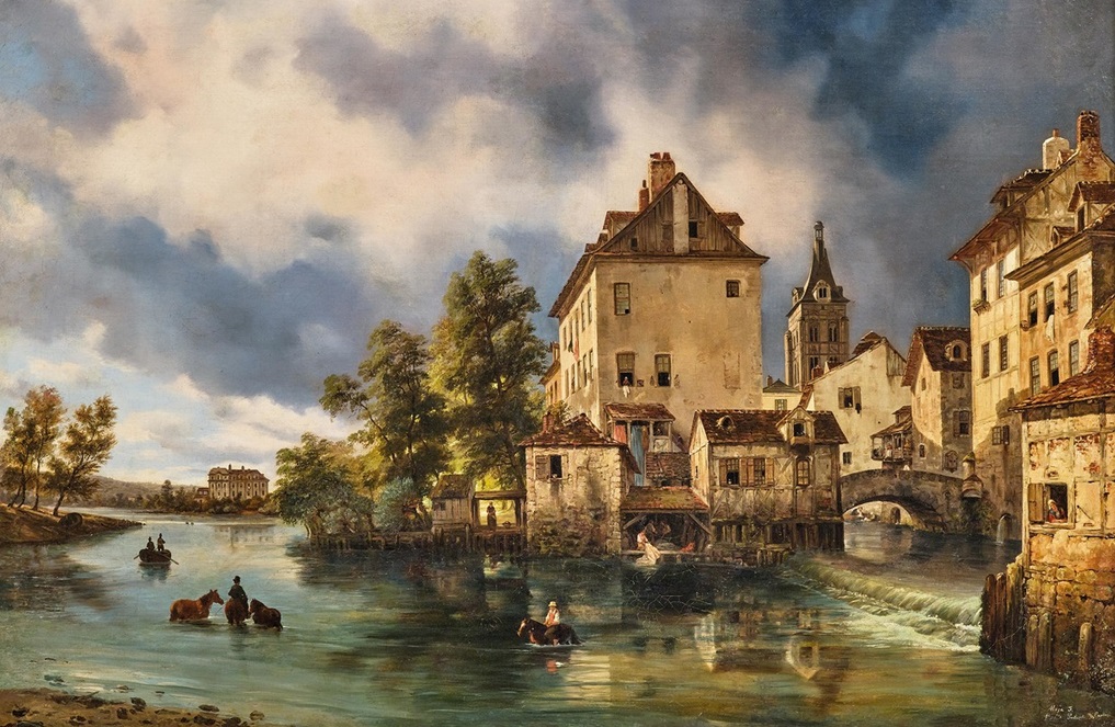aldeia, com o pastor e o rebanho (1841) Jakob Fürchtegott Dielmann