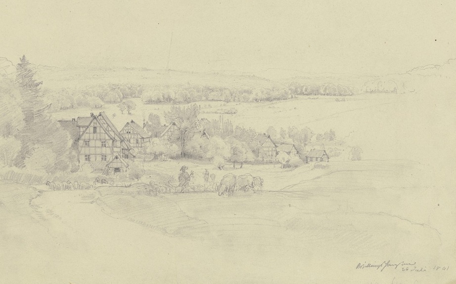 aldeia, com o pastor e o rebanho (1841) Jakob Fürchtegott Dielmann