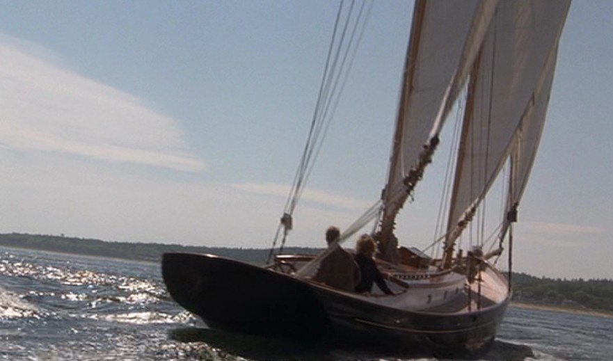 Por último, a escuna retornando placidamente para o ancoradouro de madeira.