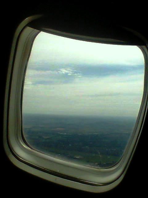 Abaixo, a imagem da paisagem da região de Ribeirão Preto, São Paulo, avistada pela janela de um pequeno avião, um jato que ergue vôo em direção à Goiânia.